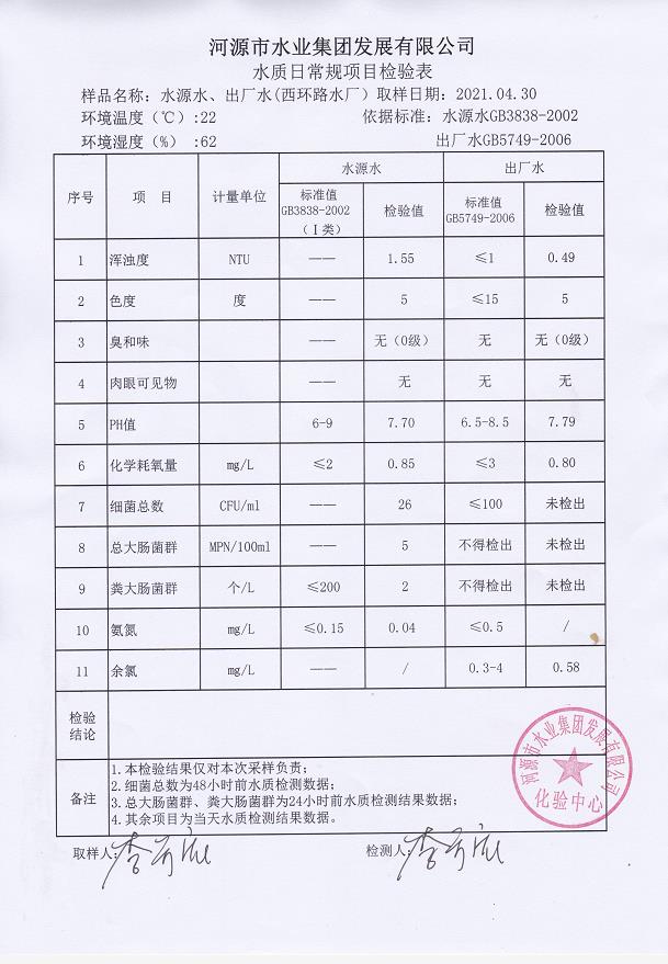 2021年4月30日水質(zhì)檢驗(yàn)報(bào)告