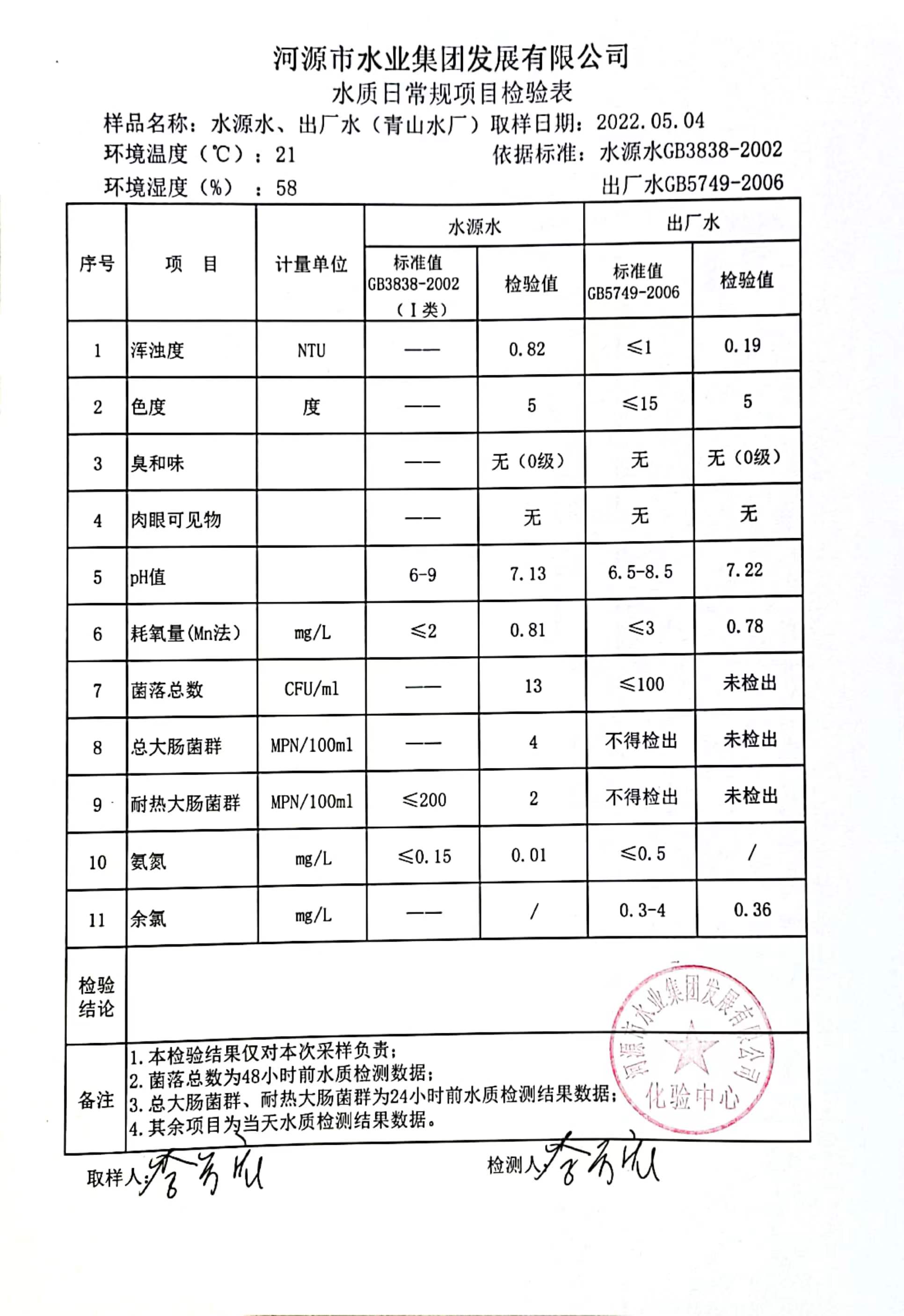 2022年5月4日水質(zhì)檢驗報告 ????